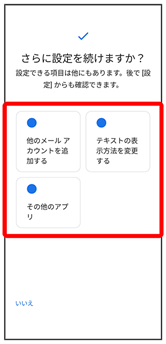 - その他の設定項目を設定しないときは、いいえをタップします。