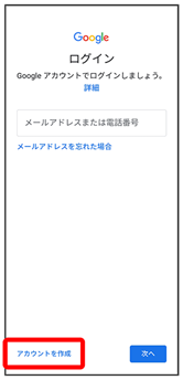 - Google アカウントのログイン画面でメールアドレスまたは電話番号を入力