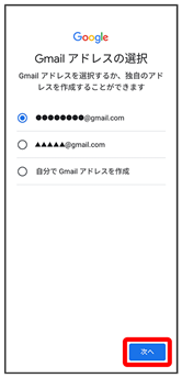- Gmail アドレスを選択