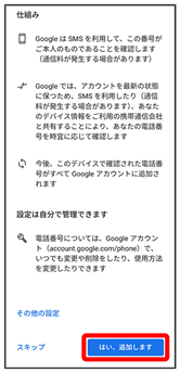 - 電話番号の追加をしないときはスキップをタップします。