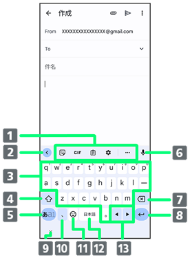 | 1 | 複数のレイアウト・言語のキーボードを使用している場合は、ロングタッチするとキーボードを変更することができます。 |