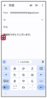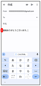 キーを上下左右にフリックすることで、キーを繰り返しタップすることなく、入力したい文字を入力できます。キーに触れると、フリック入力で入力できる候補が表示されます。入力したい文字が表示されている方向にフリックすると、文字が入力されます。
