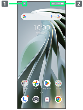 ステータスバーは、本機の画面上部にあります。新着メールなどの通知アイコンや、本機の状態をお知らせするステータスアイコンが表示されます。