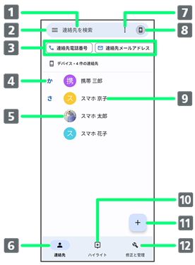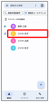 | タップした項目に該当する連絡先が表示されます。 | ||