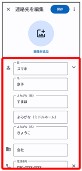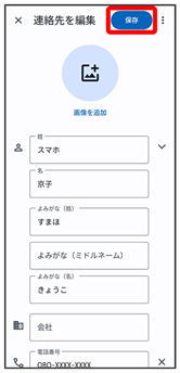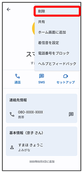 | タップすると、連絡先詳細画面が表示されます。 | ||