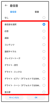 - ダウンロードした着信音などを設定するときは、音楽をタップして画面の指示に従って操作してください。