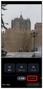 - 切り出す枠をピンチイン/ピンチアウト/ドラッグして、サイズ/位置を調節