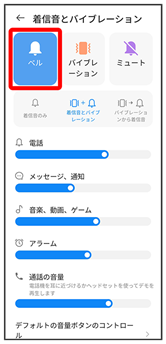 | メッセージ、通知 | メッセージや通知音の音量を設定します。 | |