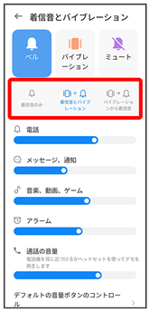- 着信音のみ/着信音とバイブレーション/バイブレーションから着信音