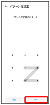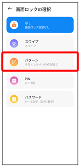 - パターンを指でなぞって画面ロックを解除するように設定する