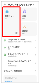 | 画面ロック | 画面ロックの解除方法を設定します。 | |