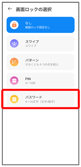 - 変更前の画面ロックの解除方法がなしまたはスワイプ以外のときは、ロックを解除してください。
