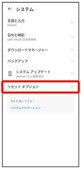 | リセット オプション | ネットワーク設定のリセットやアプリの設定のリセット、ダウンロードされたeSIMの消去、本機を初期状態にリセットができます。 |