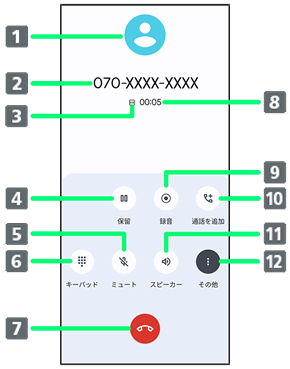 | お気に入りに登録した連絡先の表示や、お気に入りの登録ができます。また、最近使用したアイテムの履歴が表示されます。 | ||