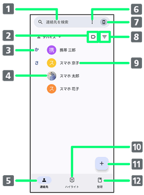 | タップすると、連絡先詳細画面が表示されます。 | ||