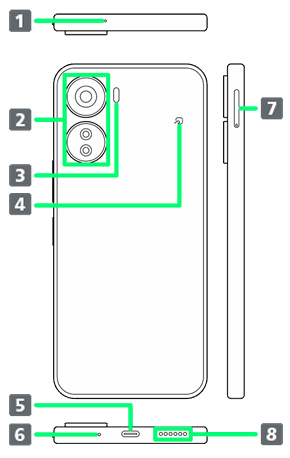 | 画面を消灯/点灯します。 長押しするとメニューが表示され、再起動、電源を切る操作などができます。2 指紋認証による、ロック画面のロック解除に利用します。 |