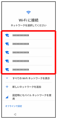 はじめて本機の電源を入れたときは、初期設定画面が表示され、Wi-FiやGoogle™アカウントなどの設定を行うことができます。画面の指示に従って、各項目を設定してください。