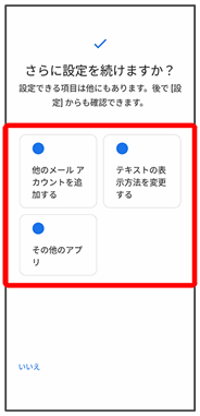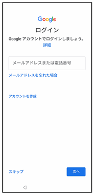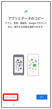 をタップすると、Google アカウントを設定しているほかの端末からデータをコピーできます。画面の指示に従って操作してください。