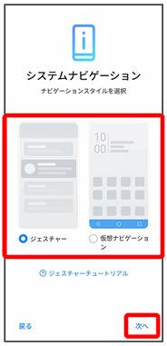 以降は「ジェスチャーナビゲーション」に設定した場合で説明します。