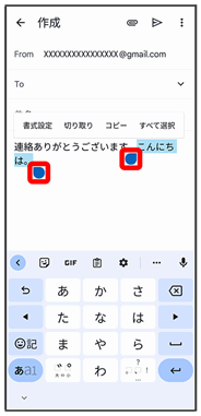 文字入力画面で入力済みの文字や、ウェブサイトの文字をダブルタップ/ロングタッチすると、文字列がハイライト表示されて編集メニューが表示されます。表示される編集メニューの項目は、アプリによって異なります。