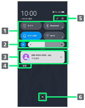 クイック設定パネルの編集や表示/非表示、端末設定メニューの表示ができます。