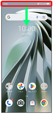 ステータスバーを下にフリック/スワイプすると、通知パネルを開くことができます。通知パネルでは、通知アイコンとその内容を確認できます。