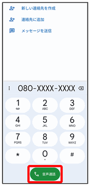 電話番号発信画面が表示されます。