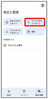 SDカードに保存(バックアップ)した電話帳データを読み込み(インポート)できます。