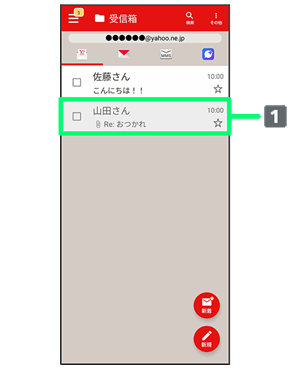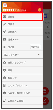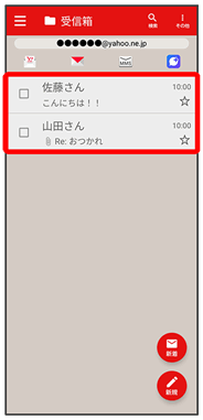 受信箱画面で下にフリック/スワイプしても新着メールの確認ができます。