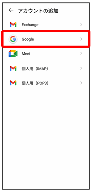 ここではGoogleのメールアカウント追加を例に説明しています。