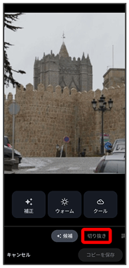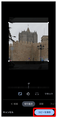 切り出す枠をピンチイン/ピンチアウト/ドラッグして、サイズ/位置を調節
