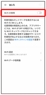ホームネットワークなどの高品質の保存済みネットワークを検出したとき、Wi-Fiを自動的にONにするかどうかを設定します。