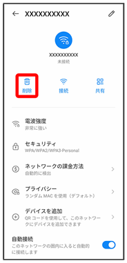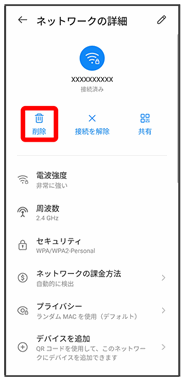 電波強度、周波数、セキュリティ、MACアドレス、IPアドレスなどが表示されます。