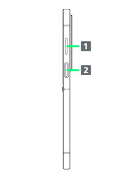 | 1 | キーを押すと音量パネルが表示され、各種音量の調節やマナーモードの設定ができます。ただし、起動中のアプリ/機能によって調節される音量の種類が異なる場合や、音量の調節以外の動作になる場合があります。 |