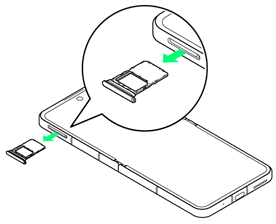 - USIMカードトレイをまっすぐに引き出し、本機から取り出す