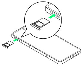 - USIMカードトレイを本機に差し込み、奥までまっすぐに押し込む