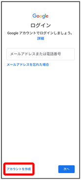 - Google アカウントのログイン画面でメールアドレスまたは電話番号を入力