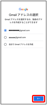 - Gmail アドレスを選択
