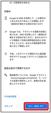 - 電話番号の追加をしないときはスキップをタップします。