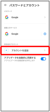 - パスワードとアカウント