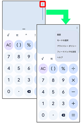 - メニューのアイコンをタップすると、その画面で利用できる機能の設定や項目が画面に表示されます。