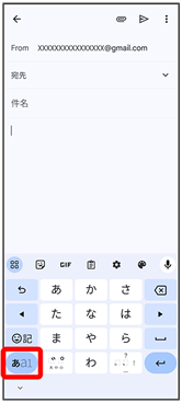 - 文字種(文字入力モード)を切り替えます(ひらがな/英字/数字)。ロングタッチするとアイコンが表示され、設定画面の表示などができます。