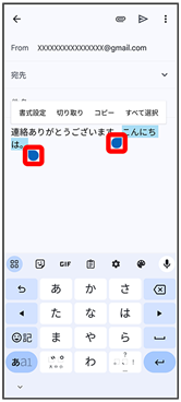 文字入力画面で入力済みの文字や、ウェブサイトの文字をダブルタップ/ロングタッチすると、文字列がハイライト表示されて編集メニューが表示されます。表示される編集メニューの項目は、アプリによって異なります。