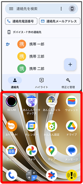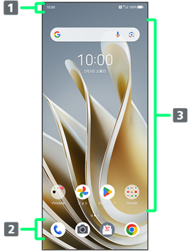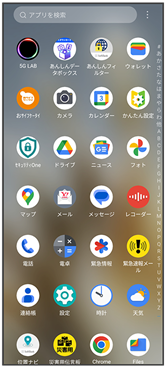 | アイコンをタップすると、アプリや機能を起動できます。お好みのアプリのショートカットを最大5つまで配置できます。フォルダを配置することもできます。 | ||