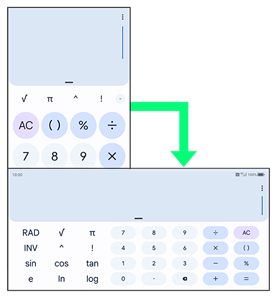 「画面回転ボタン」をONにしている場合は、回転に対応したアプリを表示中に本機の向きを変えると、