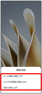 - ホーム画面に設定します/ロック中の画面に設定します/両方に設定します
