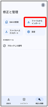 内部ストレージに保存(バックアップ)した電話帳データを読み込み(インポート)できます。