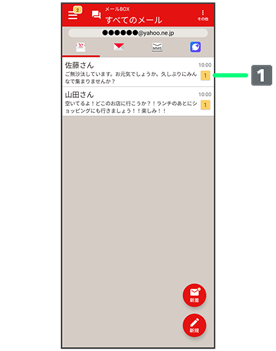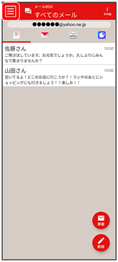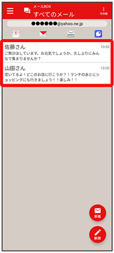 - 相手を限定せずに、迷惑メール以外の受信したすべてのメールを確認するときは、すべてのメールをタップします。