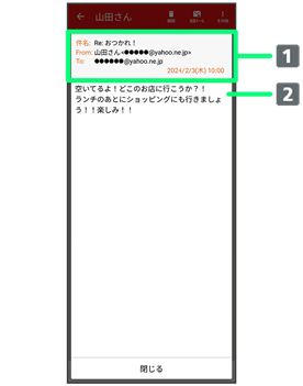 - 指定ドメインに設定した相手とのメールを確認するときは、指定ドメインをタップします。