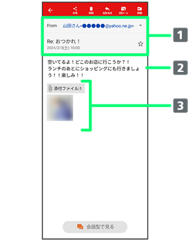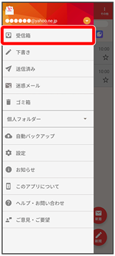 - 受信箱画面で下にフリック/スワイプしても新着メールの確認ができます。